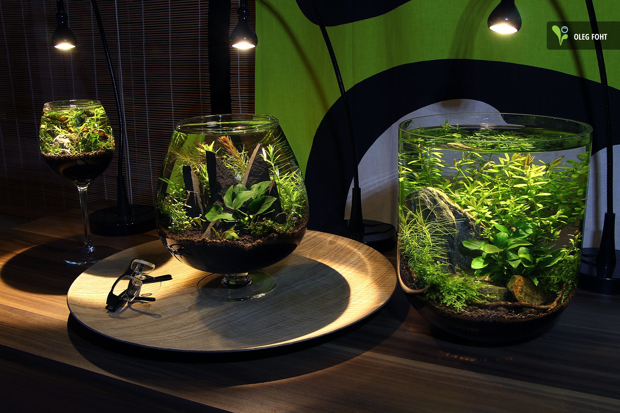 Для стеклянных конструкций с меньшим размером коллекторский стиль оформления использовать не рекомендуется. В противном случае все пространство будет перекрыто зелеными посадками, а рыбкам и другим существам не останется свободного пространства для существования.