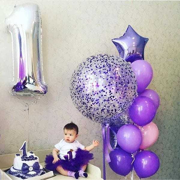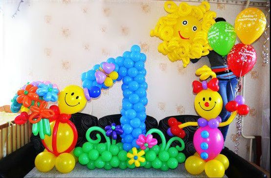 Первый день рождения – второе значимое событие в жизни семьи. Это торжество принято отмечать в кругу близких родственников. Сделать праздник незабываемым и веселым, опять же, помогут шарики. Маленький ребенок уже научился ходить и живо интересуется окружающим миром. Этот момент важно учитывать и при декорировании комнаты.Здесь хорошим решением становятся: