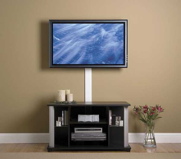 Несмотря на разнообразие подвесных моделей, не стоит отбрасывать традиционный вариант с телевизором на мебельной плоскости. У него есть свои преимущества: например, уровень посадки, мобильность и отсутствие необходимости в монтаже.