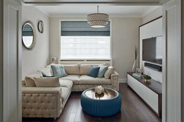 В небольшой комнате будет лучше смотреться модель среднего размера, закрепленная на стене или на потолке. В просторном зале можно разместить крупногабаритную технику. Обычно для ТВ-зоны выбирают сторону напротив окна или перпендикулярную ему.