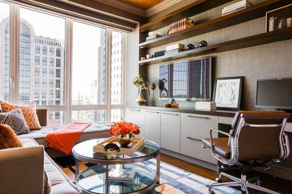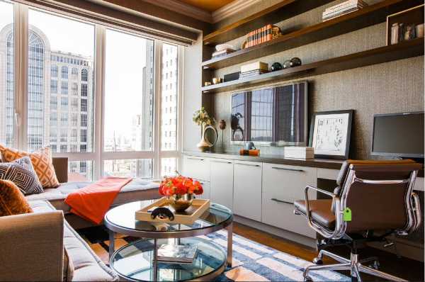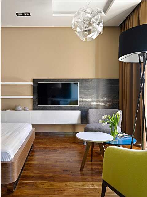 Вторая вариация, которую мы будем рассматривать, дает возможность не делать устройство, если можно так выразиться, «гвоздем сезона», однако в то же время и не отказываться от размещения телевизора вовсе.