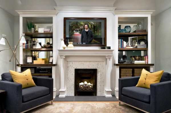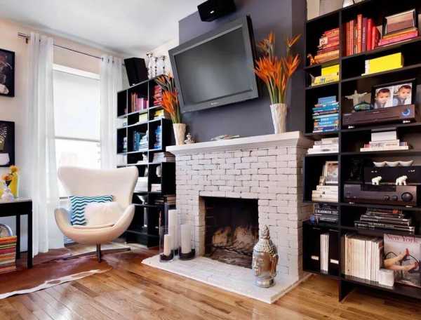 Когда-то, в доэлектрическую эру, семьи собирались вокруг камина, чтобы согреться и понаблюдать за размеренным танцем пламени. Телевизор сегодня играет похожую функцию, а одновременное нахождение этих двух предметов вызывает дисбаланс в комнате.