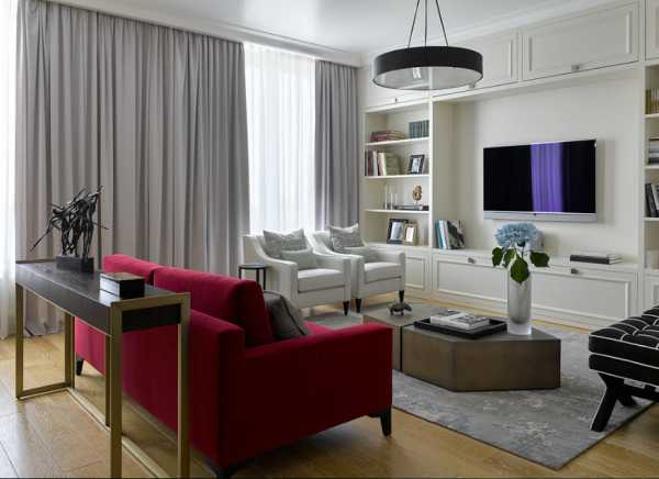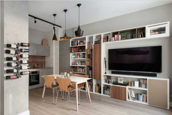 Сегодня в моду входит мебель со встроенной техникой или той, что предполагает наличие ниши для ее установки. Такое решение позволяет максимально рационально организовать полезную площадь, места хранения и визуально скрыть плазму.