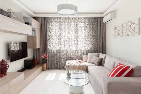 Этот вариант декорирования доступен каждому. ТВ-зону можно выделить полотном, отличающимся от остальных стен, допустим, неброским узором. Главное – избегать слишком ярких оттенков и контрастных принтов.