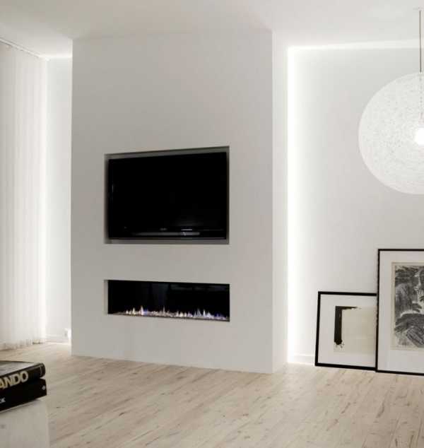 Во-вторых, можно приобрести электрокамин вместо аутентичного экземпляра, а над ним разместить плазму. Такие устройства обладают современным дизайном, благодаря чему отлично впишутся в любой интерьер. Правда, они не передают очарование настоящего огня, но помогут разнообразить гостиную.