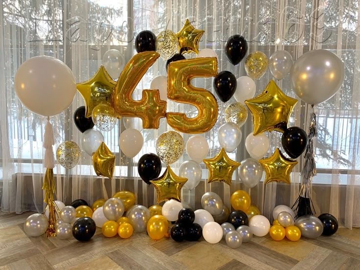 10 гелиевых шариков, 6 звезд, 2 цифры