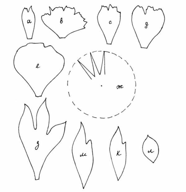 - Рассмотрите внимательно выкройку деталей цветка представленную ниже.