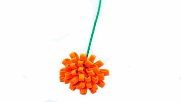 - Наденьте заготовку Ж в форме солнышка на стебель и завяжите лучики ниткой.