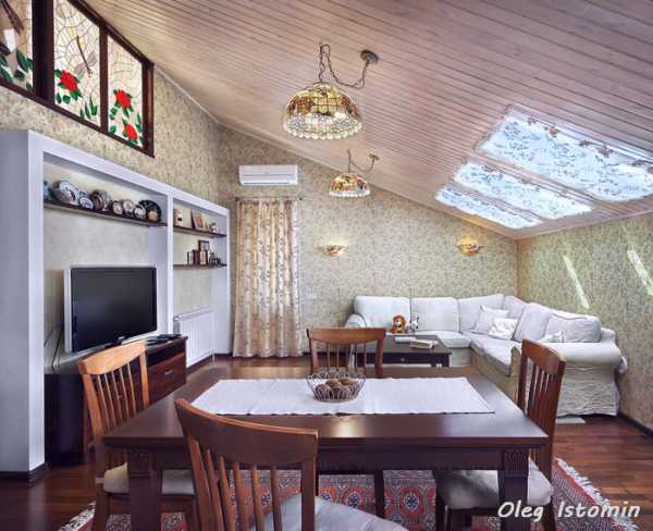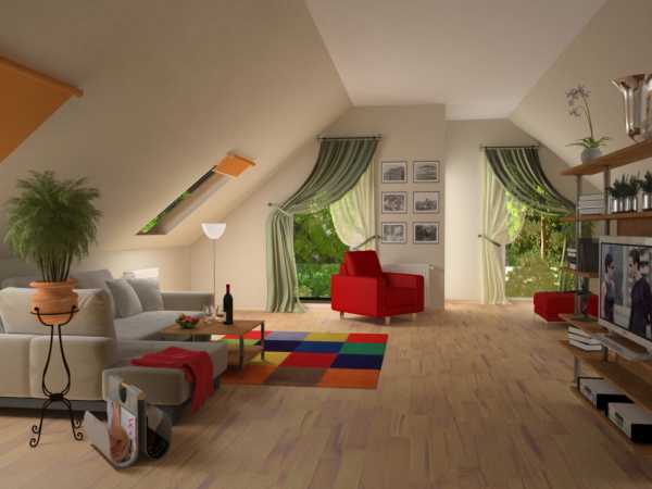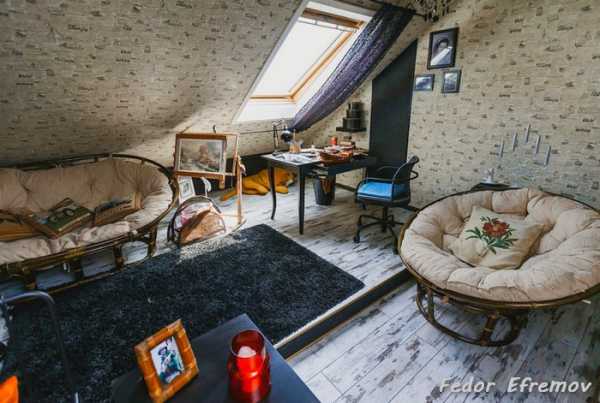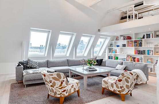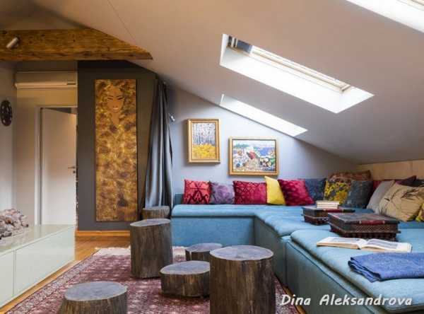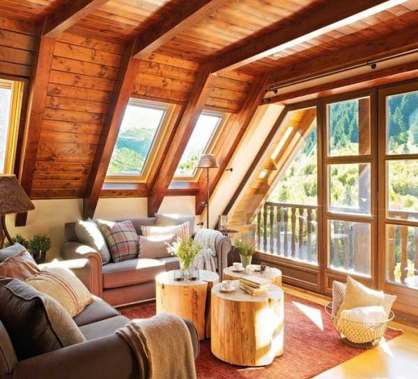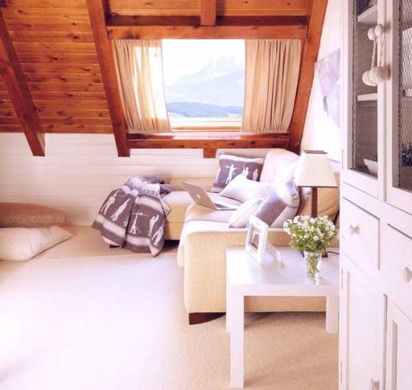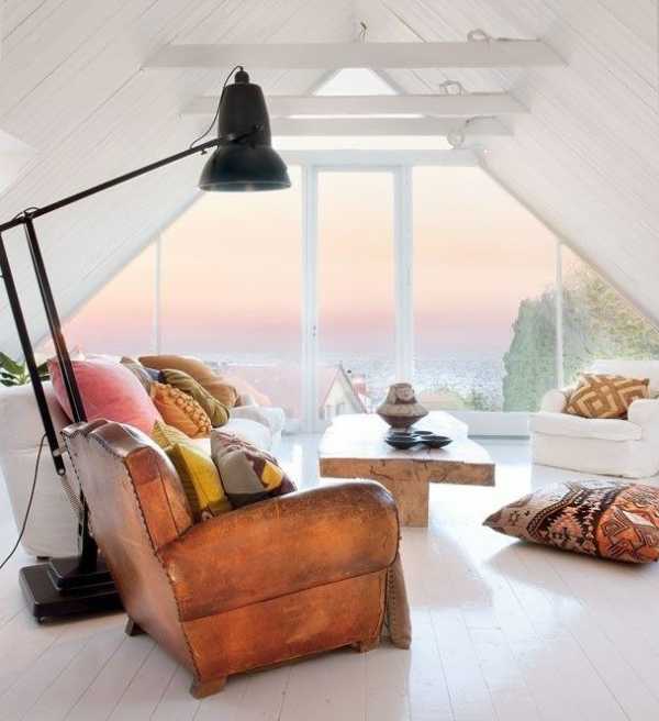 На чердачном помещении с окнами при минимальных усилиях и затратах можно сделать уютную гостиную