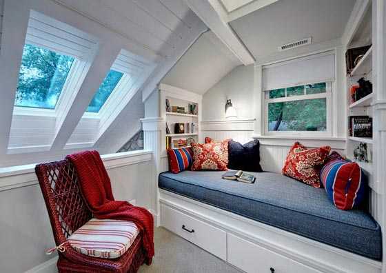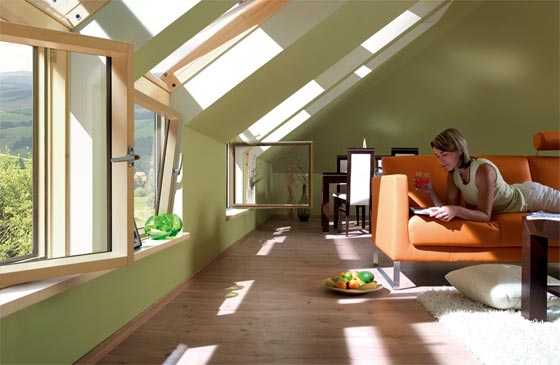 - интерьер комнаты необходимо обеспечить достаточным солнечны светом. Для этого придется встроит специальные мансардные окна или изменив слегка конструкцию крыши установить слуховое окно.