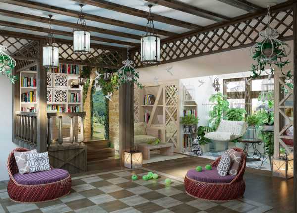 Как вариант – альпийское шале — гобелены, пледы, вышивка, камин.