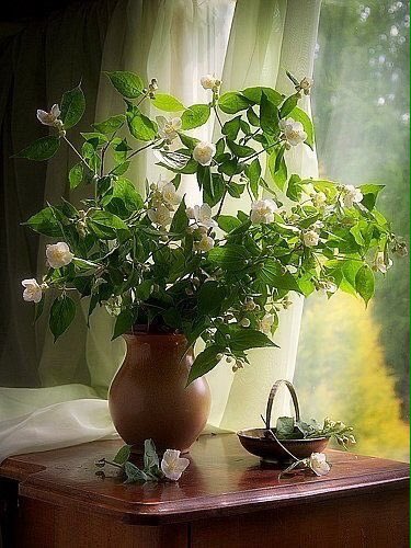 При размещении комнатных цветов на подоконнике не забывают о том, что оконный свет должен в достаточной мере проникать в комнату.