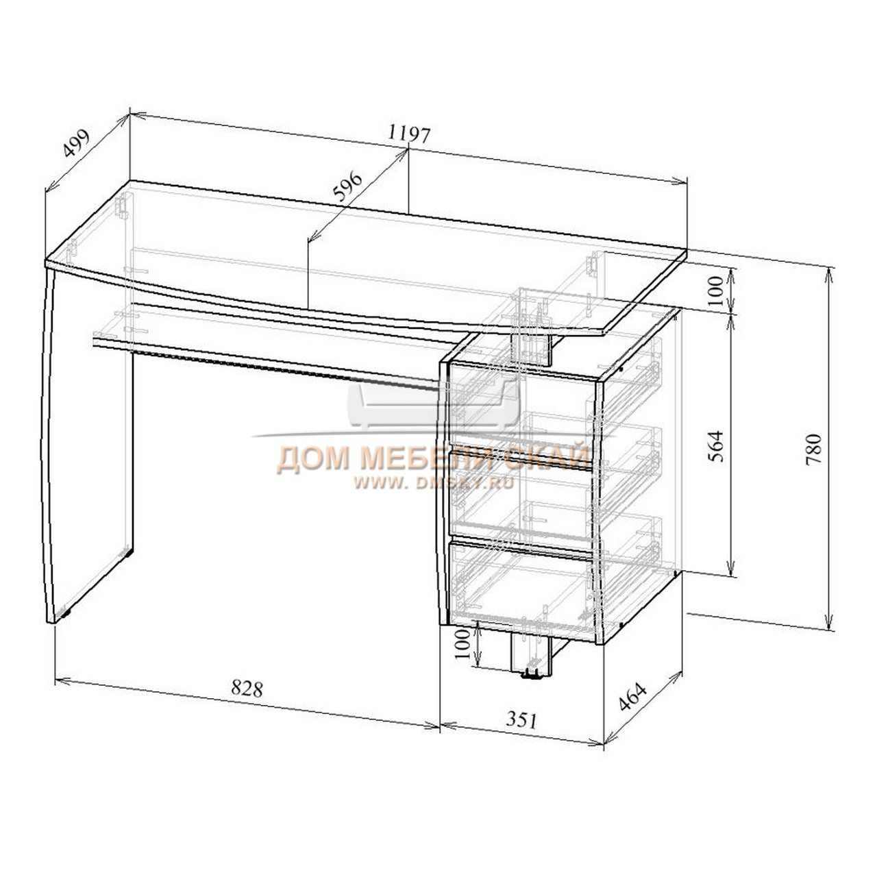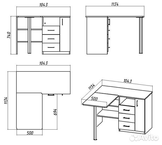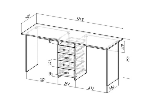 В основу любого изделия входит столешница, боковины и центральная перекладина. Можно сделать дополнительные полки и выдвижные ящики. Предмет мебели собирают с помощью креплений и шурупов.