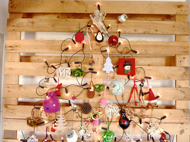 Украсить новогоднюю елку можно не только игрушками, купленными в магазине, — можно сделать их и самостоятельно! Для этого понадобятся прямые сухие ветки, кусок картона, ножницы, клей и новогодние украшения (кусочки хвойных веток, шишки и тому подобное).