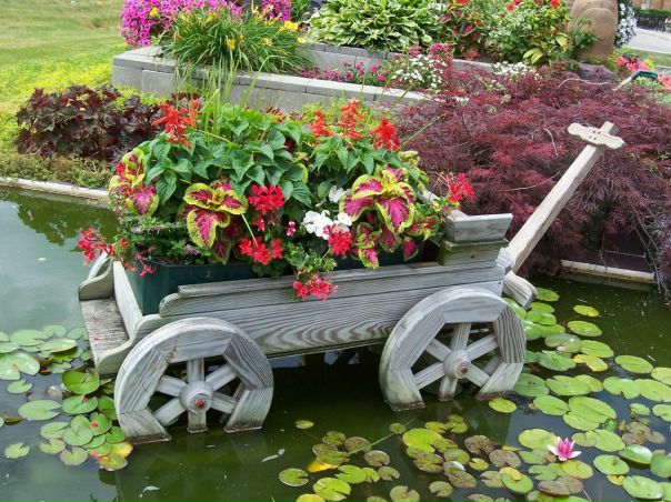 Шикарная клумба в телеге