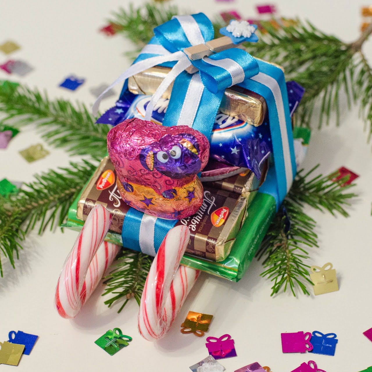 Даже обычная шоколадка с декором в виде снеговичка, станет прекрасным подарком. А целая корзина праздничных сладостей точно понравится всем!