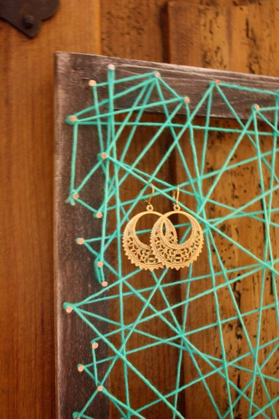 С помощью (опять же) старой рамки, гвоздей и ниток делаем паутинку, которая несомненно пригодится в качестве хранения ключей и аксессуаров: