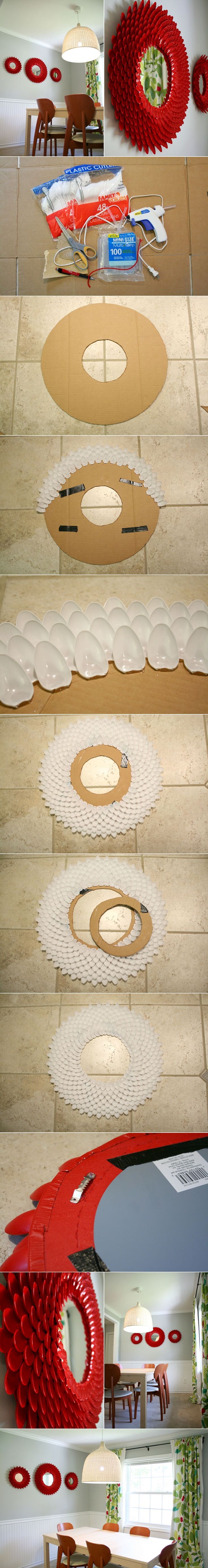 Дешево и сердито: пластиковые ложки без ручки — прекрасны, когда их много, они склеены и покрашены.