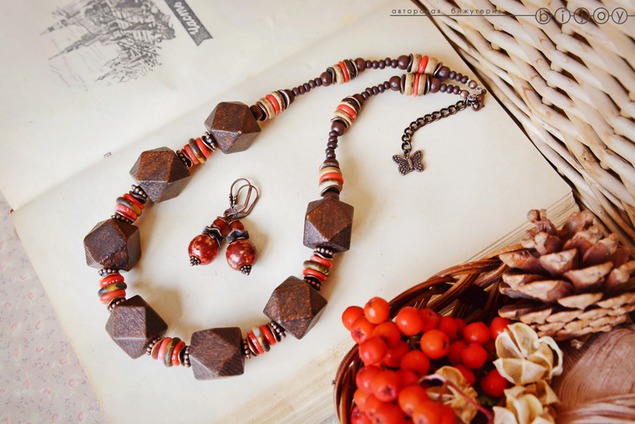 Бусы — это, пожалуй. самое простое, что можно смастерить из природных материалов. Но не нужно воспринимать эту рекомендацию скептично: разумеется, в таком украшении вы вряд ли пойдете на работу или на прогулку. Но во-первых, бусы из ягод рябины или черноплодки могут стать отличным дополнением к национальному костюму, который ваша дочка или внучка наверняка наденет на утренник в школу или детский сад.