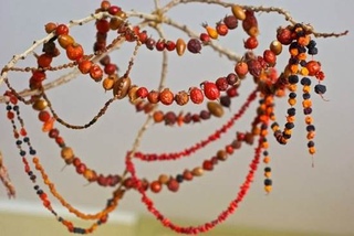 Чтобы холодными зимними вечерами можно было заваривать чай из диких ягод, при создании бус чередуйте плоды разных деревьев и кустарников между собой.