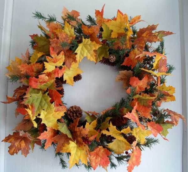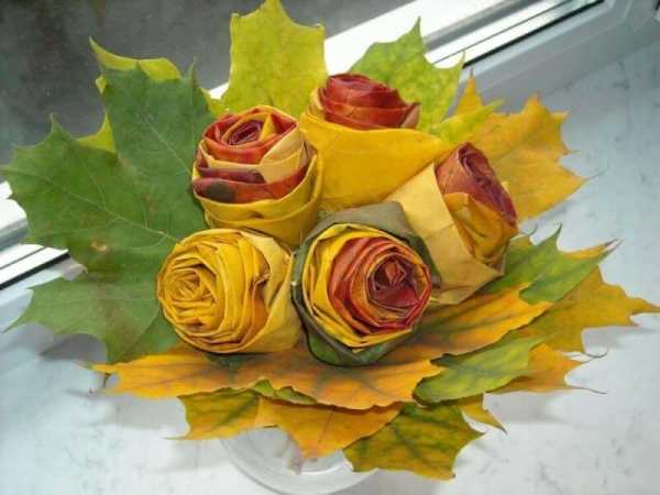 Осенняя поделка с литочкамиМожно сделать осенние листочки из теста и без использования настоящих листьев.