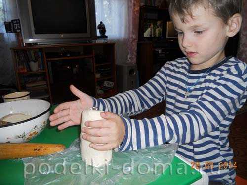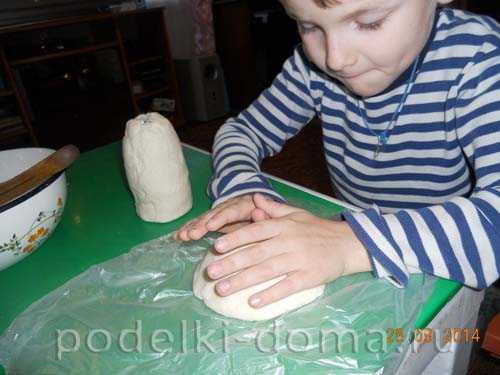 Для этого мы вымешиваем соленое тесто и делим его на несколько комочков.