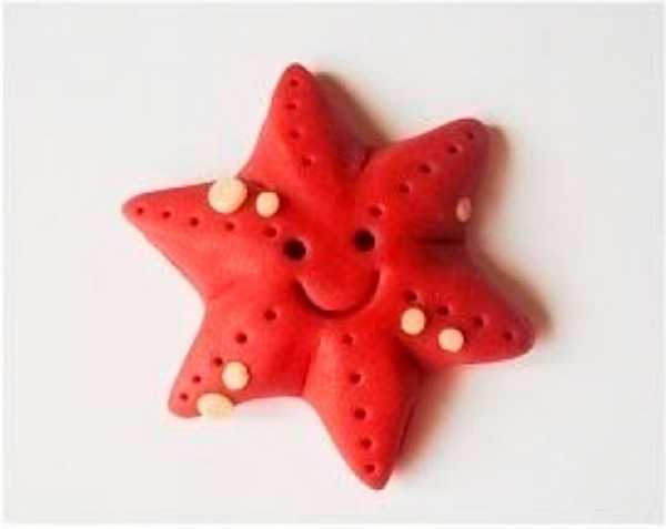 - Прикрепите маленькие плоские шарики другого цвета с помощью воды, украсив звёздочку.