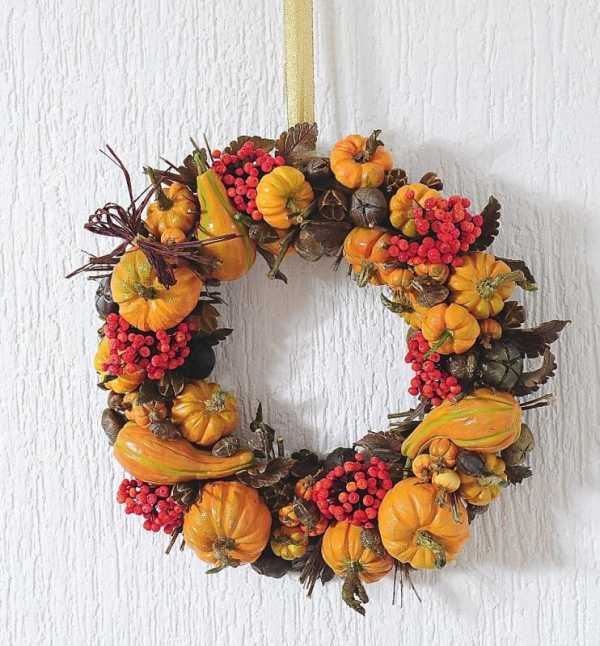 Было бы неплохо, если рядом с готовой картиной из листьев вы расставили и другие осенние элементы декора. Например, тыквы, колоски и прочие вещицы подходящие по стилю. Тогда у вас выйдет целый осенний ансамбль.