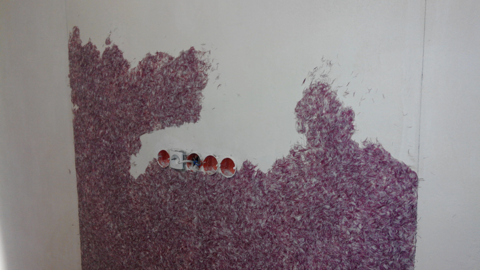 - Как снять жидкие обои после завершения их эксплуатации? Хорошо смочите их, а затем аккуратно удалите шпателем. Оставшиеся куски затрите наждачной бумагой.