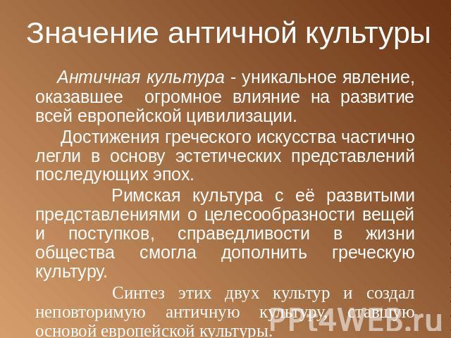 Особенности античной культуры | Мудрый Философ