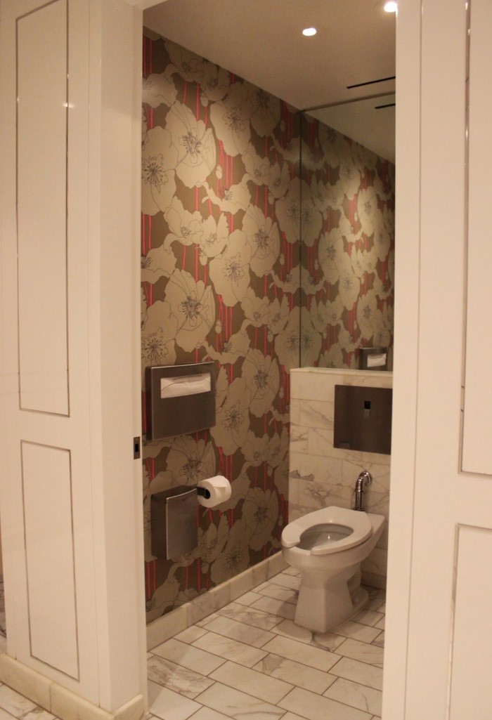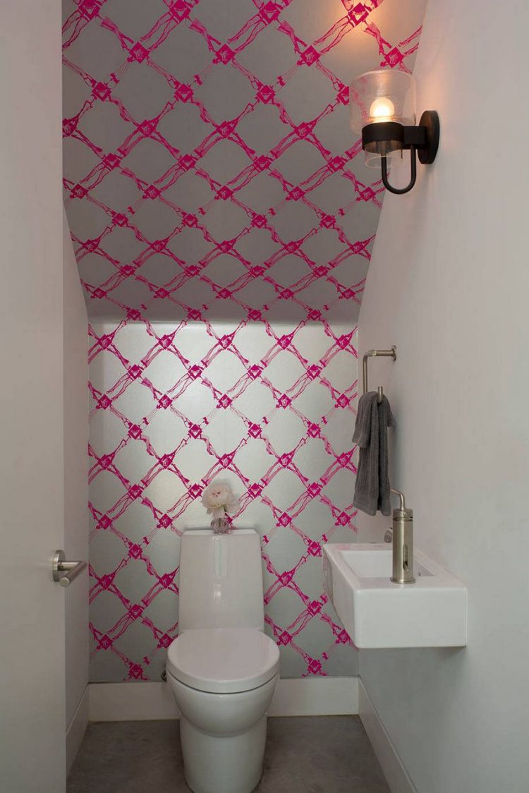 - легко подобрать как дорогие обои, так и приемлемые по цене. Площадь туалетов обычно небольшая, поэтому отделку можно часто обновлять;