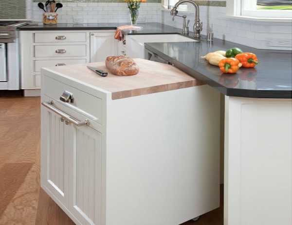 И ещё: помните о возможности приобретения или изготовления мобильных кухонных островов, которые можно перемещать от раковины к обеденному столу и т.д.