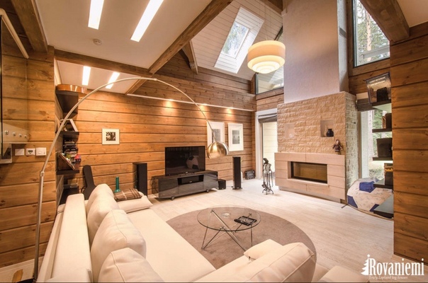 Создавая проект коттеджа из дерева, многие отдают предпочтение гостиной с так называемым вторым светом. Она представляет собой высокую комнату в два этажа, наполненную дневным светом. Кстати, оборудовать подобное помещение можно как в загородном особняке, так и в двухэтажной квартире. Чаще всего в нем установлены огромные панорамные окна, из которых видно прекрасный пейзаж. При этом комната со вторым светом отделена от других помещений либо расположена в открытой зоне.