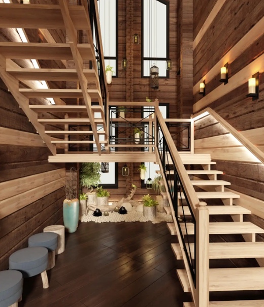 Чтобы не допустить ошибок при создании освещения лестницы в деревянном доме, придерживайтесь следующих рекомендаций: важно, чтобы ступеньки были подсвечены, однако свет не должен ослеплять жильцов.