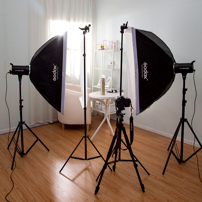 При обустройстве домашней фотостудии достаточно распределить приборы по высоте.