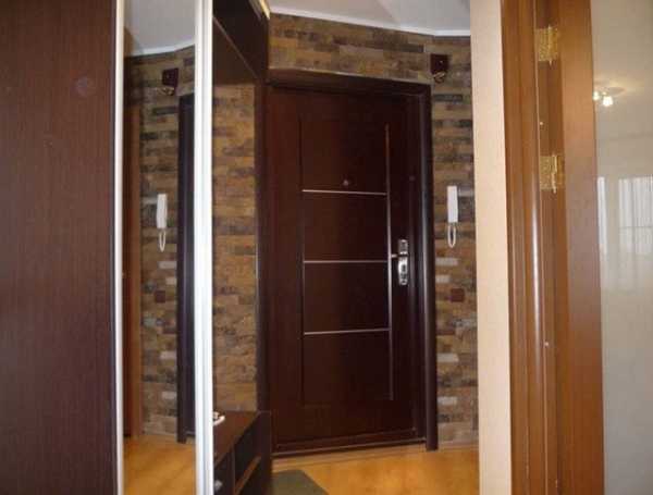 Отделка прихожей декоративным камнем и обоями. Фото законченных интерьеров