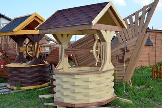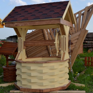Для наружной декоративной отделки колодцев задействуются различные пиломатериалы: