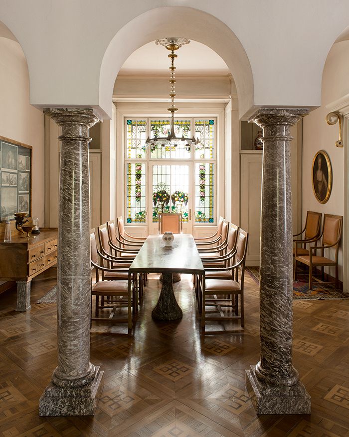 Колонны-подставки в вестибюле дома