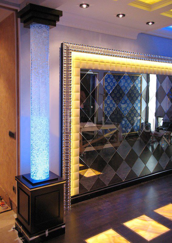 Когда их в помещении много, это смотрится очень эффектно. В таком случае, в качестве облицовки используют панели из акрилового стекла, или стекловолокна.