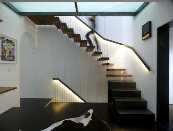 С помощью света можно красиво оформить лестничный проем