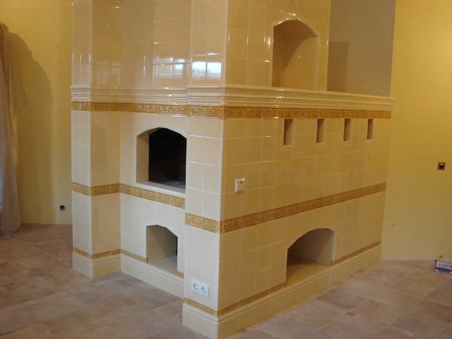 Слой же керамической плитки защищает стены печи от быстрого остывания и, нагреваясь, отлично отдает тепло в помещения.