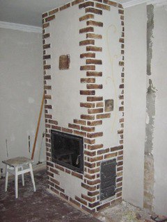 | Стены выравниваются раствором, замешанным из сухой жаростойкой штукатурной или же глиняной смеси. | |