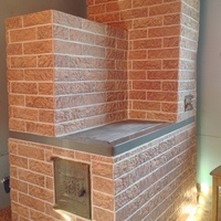По замыслу мастера, печь отделывается по комбинированной технологии – применяются оштукатуривание и облицовка терракотовой плиткойВ данном случае представлен комбинированный вариант отделки, когда терракотовая керамическая плитка идет в комплексе с оштукатуренной и окрашенной поверхностью.