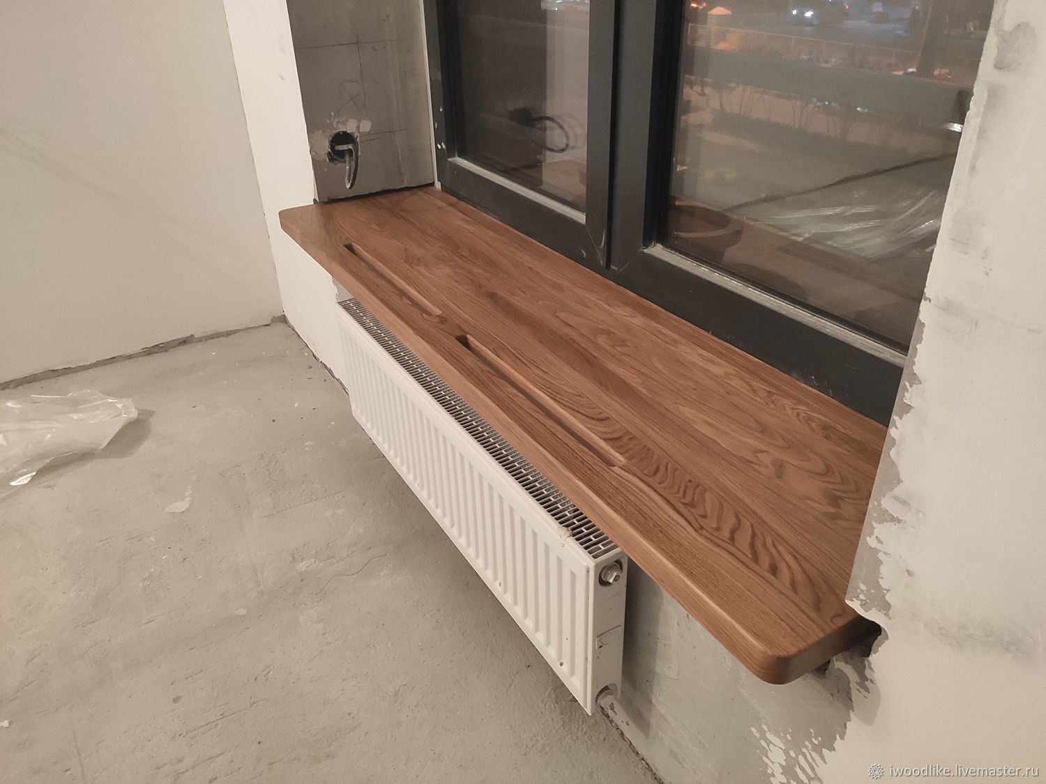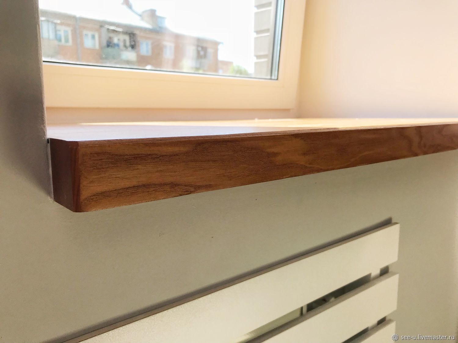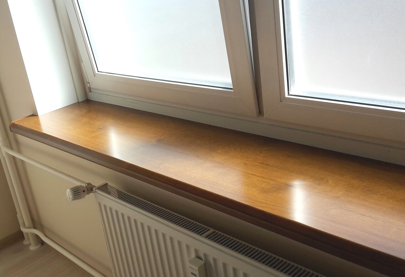Отделка подоконника деревом