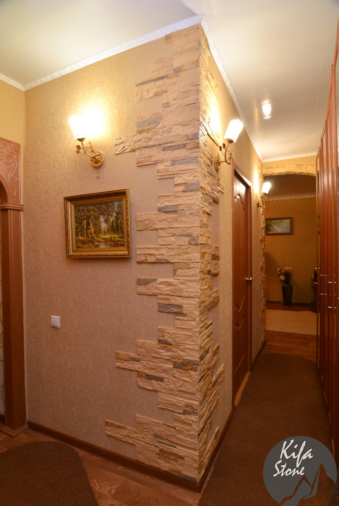 д. Светлые тона сделают её больше, просторнее. - В проходимых местах, например, в прихожей или в коридоре, рекомендуется использовать более тёмный камень: коричневого, кофейного цвета. Он меньше пачкается.
