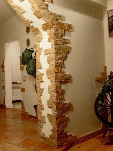 Такой камень часто используется для создания эксклюзивного дизайна интерьера. Его популярность обусловлена удивительной структурой декоративной поверхности, имитирующей материал натурального происхождения. Часто изготавливают его из гипса — он дешевле. Элементы мало весят, их несложно монтировать. Минус — гипсовый камень хрупкий, но служит долго.