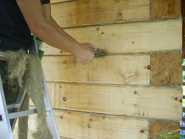 - Заделка щелей. Повысить теплоизоляционные показатели жилища позволит заполнение щелей, которые в любом случае присутствуют в деревянном доме. Для заделки используются различные материалы: от классической пакли и войлока до обычного мха.