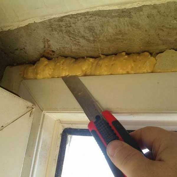 - Срезание излишков монтажной пены, герметизирующей оконный блок.