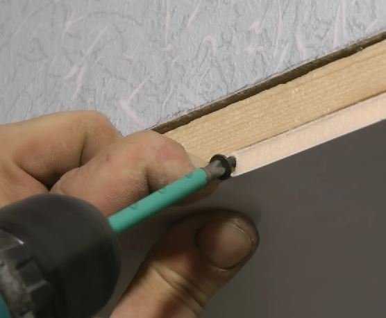 Приготовленную смесь нанесем на стену, после клеим боковые панели гипсокартона. После того как мы убедились в правильности монтажа, установили симметричность углов, можно приступать к монтажу верхней панели.