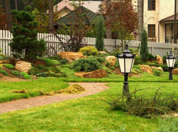 Естественно, освещение прилегающего к дому участка играет важную роль в оформлении, помогая двору играть разными красками, как показано на фото озеленения двора. Стоит грамотно продумать игру искусственного света.